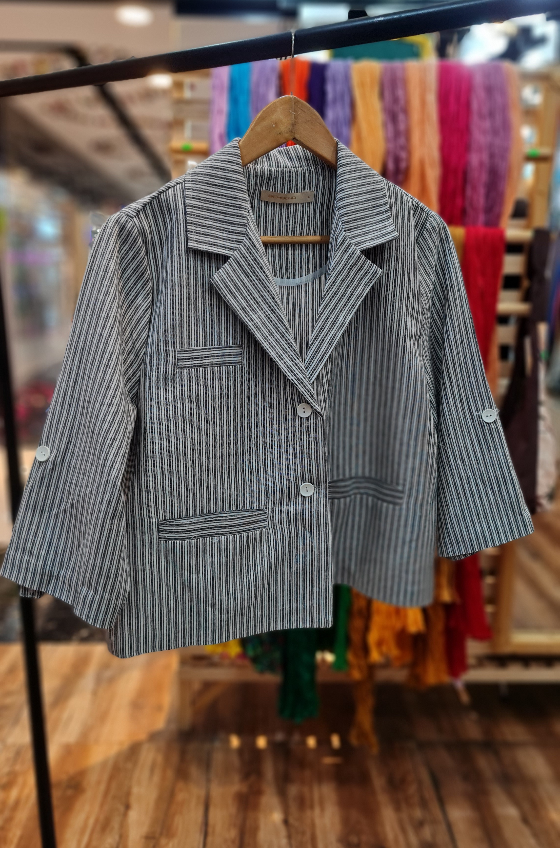 کت کراپ راه راه جنس لینن