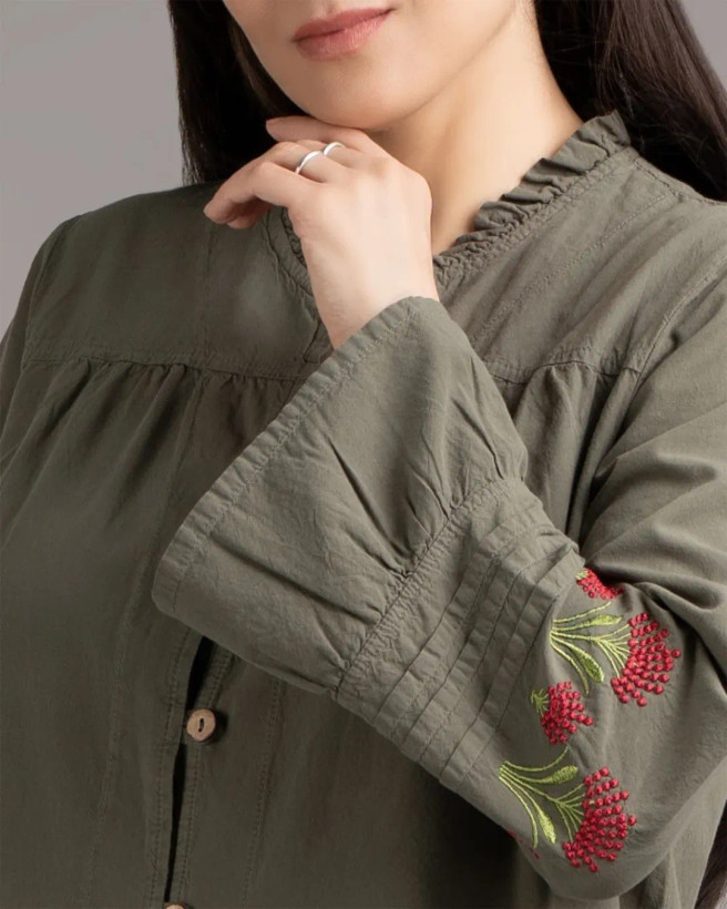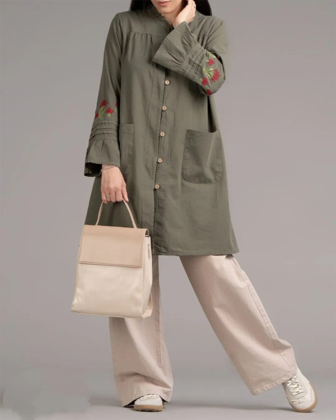 مانتو آیلین یه انتخاب خاص برای محل کار دوخت تمیز، پارچه لطیف و گلدوزیهای ظریف روی آستینها، این مانتو رو تبدیل کرده به یه استایل شیک و مینیمال برای روزهای پاییزی ساده، اما خاص و چشمنواز