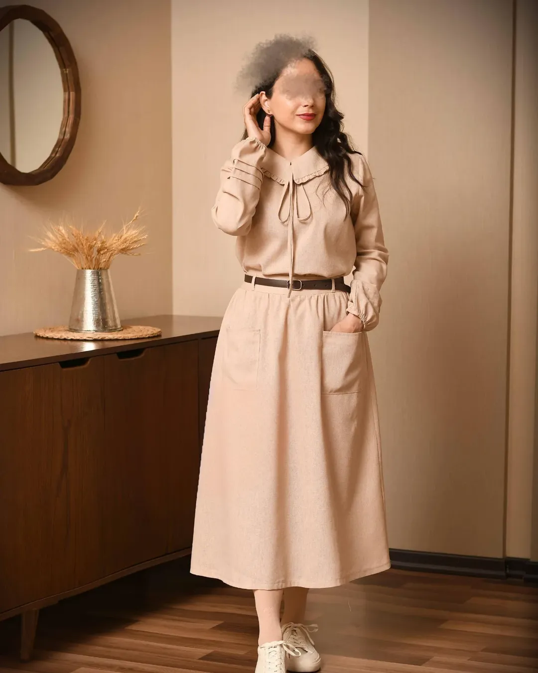 اطلاعات سایز 1: شومیز: دور سینه 96، قد 58، قد آستین از سرشانه 56 / دامن: قد 78، دور کمر 64 تا 85، دور باسن 100