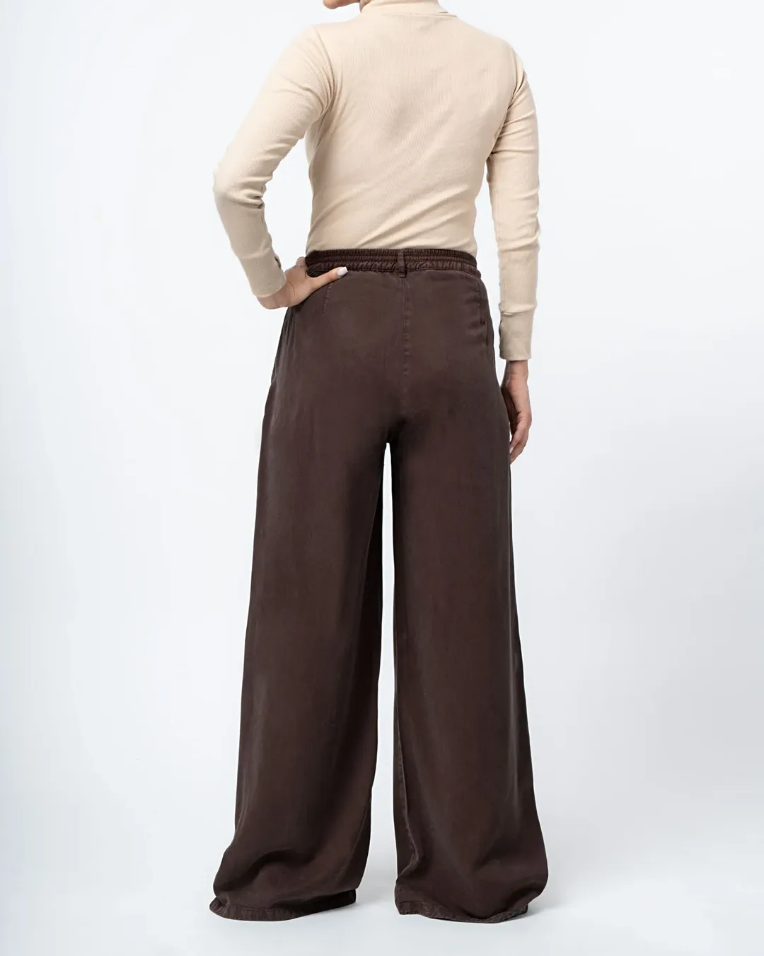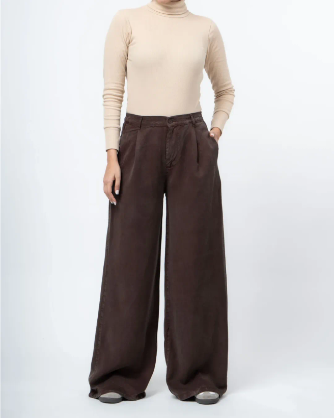 شلوار واید زنانه جنس سیلک کتان رنگ قهوه ای