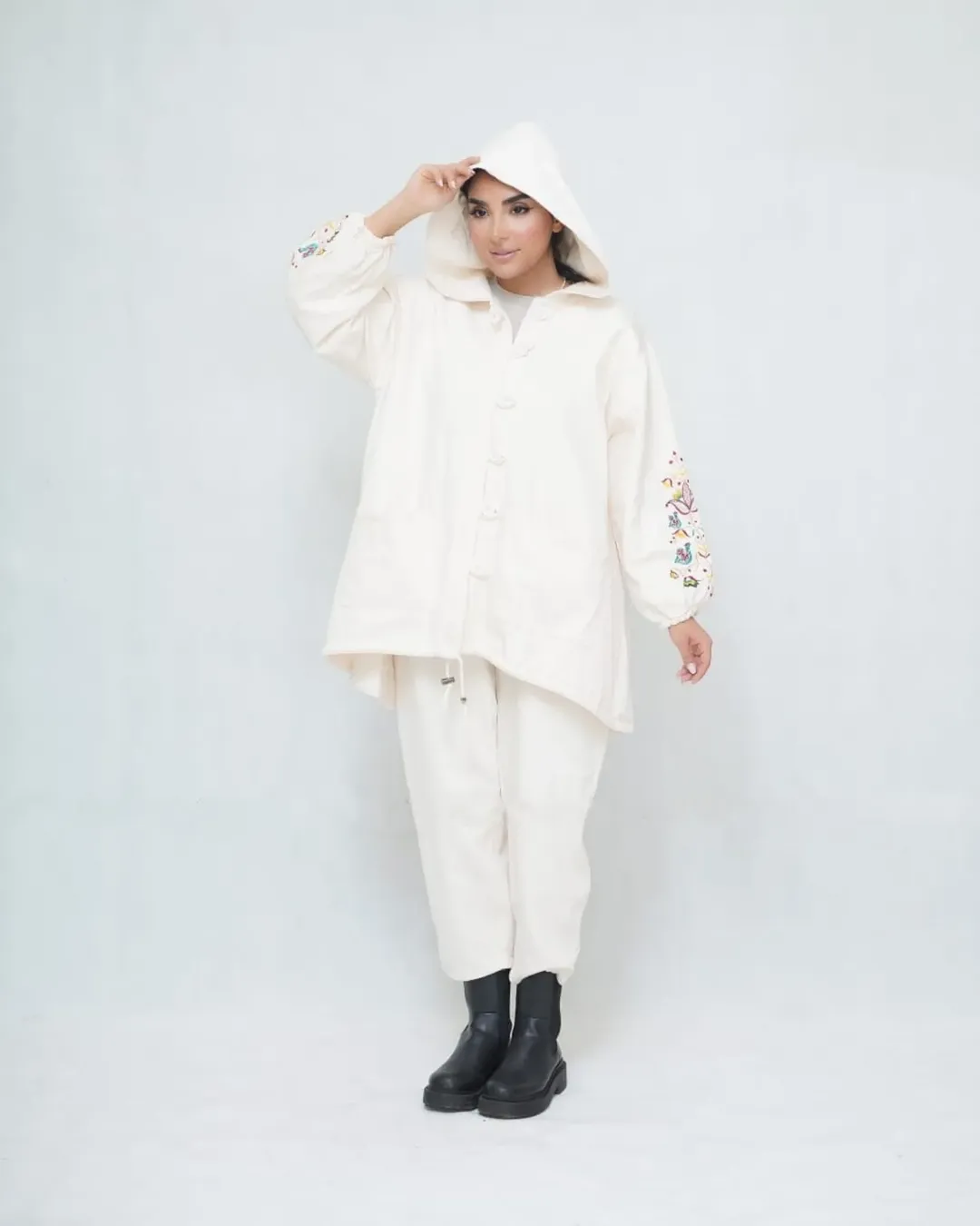 تونیک کلاه دار زنانه پرنده جنس کتان